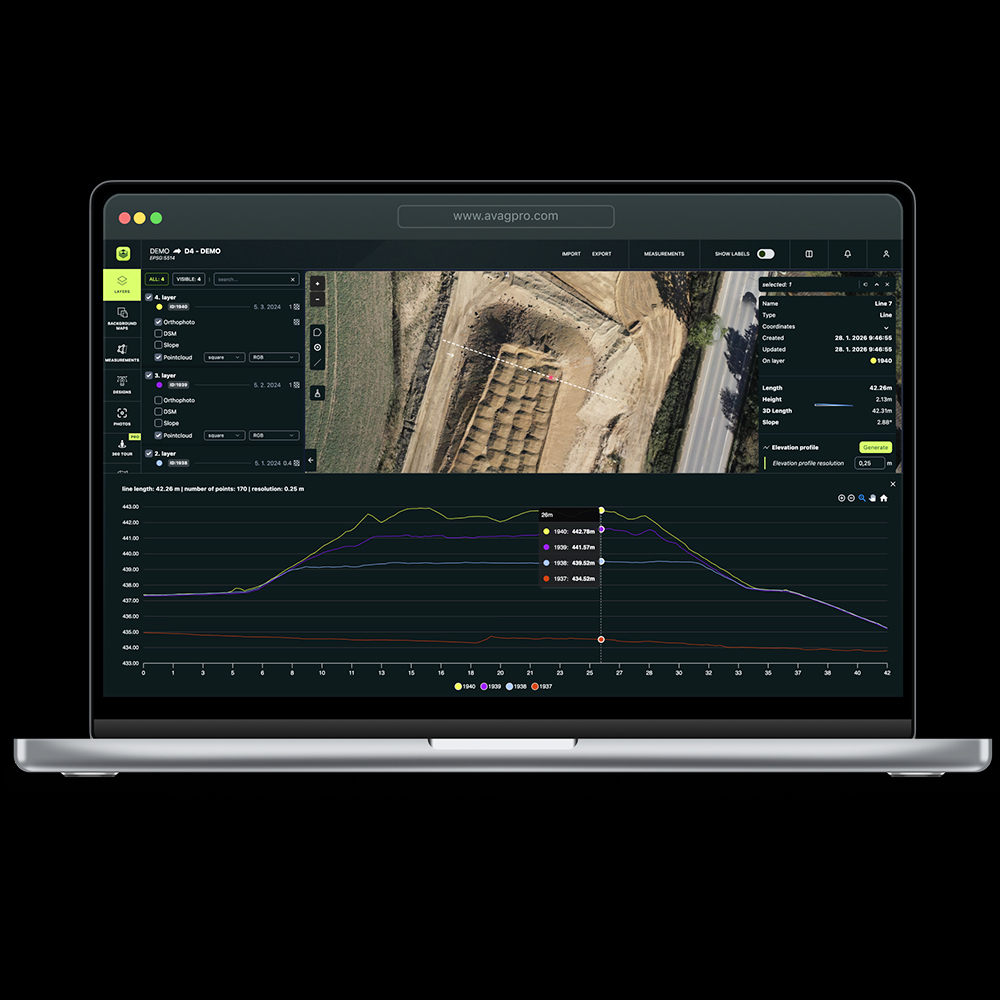 AVAG ist eine leistungsstarke Cloud-Plattform zur Verarbeitung, Analyse und Verwaltung von Drohnendaten – jederzeit und von überall zugänglich. Die Software ermöglicht es, große Datenmengen aus Drohneneinsätzen effizient zu organisieren und in verwertbare Informationen umzuwandeln.