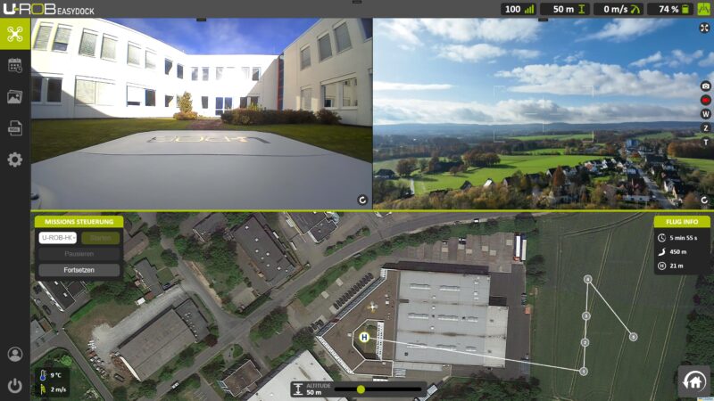 Die Benutzeroberfläche ist intuitiv gestaltet und erfordert nur minimale Einarbeitung. Auf dem Startbildschirm von EasyDock können Benutzer direkt Missionen auswählen oder die „Click to Fly“-Funktion nutzen, um automatisch vorprogrammierte Flüge beispielsweise für Inspektions-, Vermessungs- oder Sicherheitseinsätze zu starten.