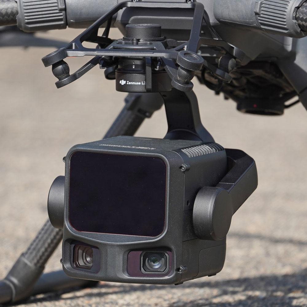 Der neue L3 Laserscanner besitzt ein LiDAR-Modul mit 80° Öffnungswinkel und zwei 4/3 CMOS Kameras, das System ermöglicht so sehr präzise Einsätze im Bereich Laserscanning und Photogrammetrie. Die hohe Laserleistung gekoppelt an den Empfang von bis zu 16 Rücksignalen gewährleistet vielfältige Einsatzmöglichkeiten des L3 Laserscanners auch für die Erstellung präziser Geländemodelle (DGM´s) bei dichter Vegetation.